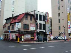 ★右の写真のラーメン屋と隣の結納のお店及び駐車場の所が松島安吉家が有った所です。”東一条の大通り”とありますが、このような場所はなく、正しい番地は南一条西五丁目一番地です。どうも宇野千代は札幌の事は思い出しだ くないようですね。